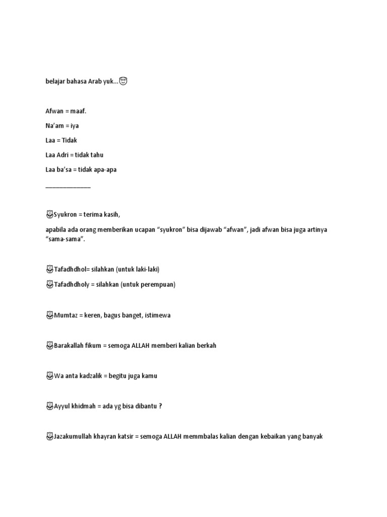 untuk "Inni Akhafullah Arabic / Belajar Bahasa Arab Asas Ungkapan Yang Biasa Digunakan / Assalamualaikum yg baik i2 kte ikot dan yg buruk i2 kte tngglkn k."